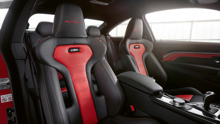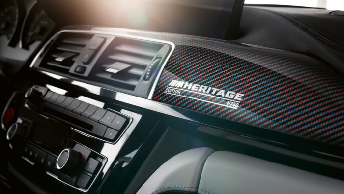 Усередині салону є два шкіряних крісла з контрастною проточкою. В обробці інтер’єру широко використані карбонові матеріали, також виділяється панель приладів, розроблена спеціально для M4 Edition M Heritage, і накладки на поріг з позначенням особливої версії.