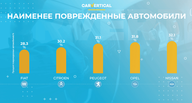 Аналитики сопоставили отчеты об истории автомобилей с июня 2020 по июнь 2021, сформированные клиентами, и назвали наиболее и наименее повреждаемые машины.