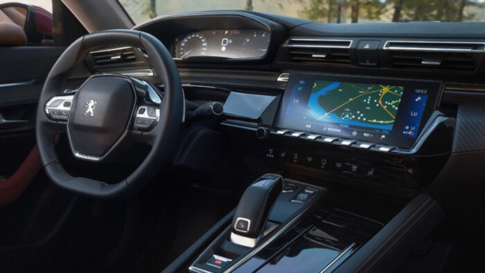 Новинка получила большую радиаторную решетку и тонкие светодиодные фары. Они расположены по краям от решетки и соединены с нижним воздухозаборником. На крышке капота находится эмблема 508. Габариты седана следующие: 4870х1855х1455 мм при колесной базе 2848 мм.
