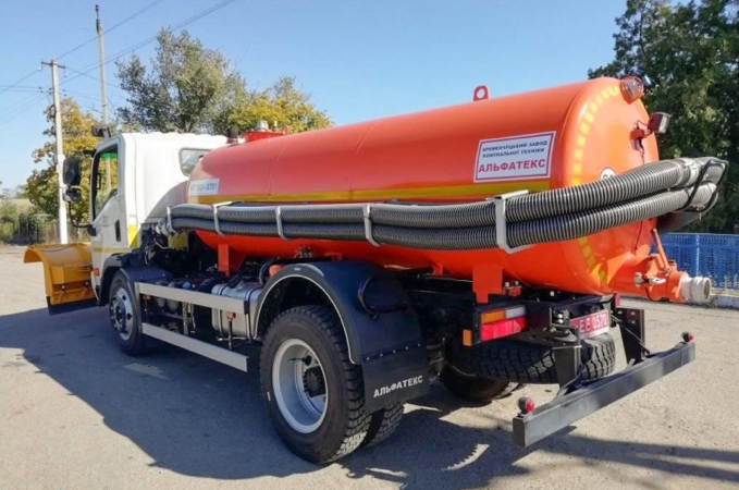 Кременчугский завод коммунальной техники «Альфатекс» изготовил новый вакуумный автомобиль модели АО ВО-701, который выполнен на шасси Dayun CGC1100.