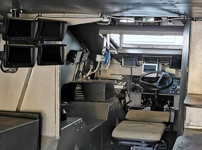 Размера машины следующие: 7000х2660х2430 мм, а масса с защитой – 13 тонн. В автомобиль вмещается три человека — командир, оператор и водитель.