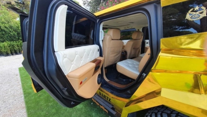 Салон машины отделан деревом и драгоценной кожей редких животных, а также внутри имеется биометрический сейф. Кузов выдерживает выстрелы из автоматического оружия калибром до 12,7 мм.