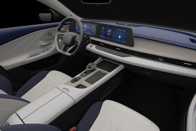 Внутри будет располагаться полностью цифровая панель приборов, которая состоит из двух 12,3-дюймовых дисплеев, объединенных под общим стеклом. Для отделки используется двухцветная кожа, полированный алюминий и ламинированные деревянные панели. Дверные карты напоминают своим дизайном Lexus LC.