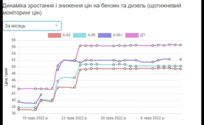 В Украине дизельное топливо подешевело на пару копеек. При этом цена на газ и бензин А-95+ выросла.