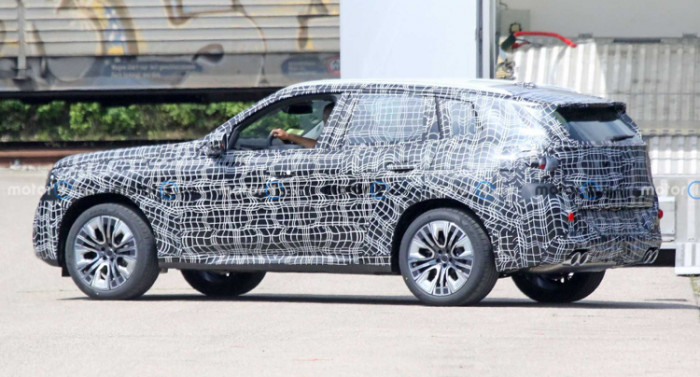 Новинка получит несколько увеличенную решетку радиатора. Снимки в профиль свидетельствуют о том, что у кроссовера сменятся стойки, подоконная линия и расположение дверных ручек. Четыре выпускных патрубка на корме указывают на то, что это не базовая версия, а «заряженная» — вроде бы нынешняя M40i.