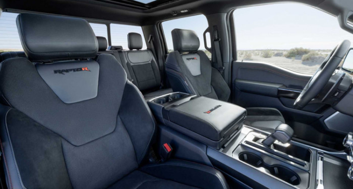Новинка получила 5,2-литровый V8 с механическим нагнетателем – примерно как у Mustang Shelby GT500. Двигатель получился не столь мощным – в американской спецификации отдача составляет 710 л.с. и 868 Нм, вместо этого его специально адаптировали для эксплуатации в условиях бездорожья, чтобы повысить долговечность и производительность. Как и у обычного «Раптора», ДВС R-версия работает с 10-ступенчатым автоматом и системой полного привода с муфтой подключения передней оси и электромеханической блокировкой заднего дифференциала.