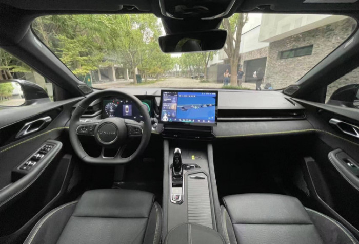 Салон Lynk&Co 03 2023 претерпел еще более радикальные изменения. Ему заменили руль, переднюю панель и рычаг КПП, а также появились новый виртуальный щиток приборов и большой сенсорный дисплей мультимедийной системы. Центральную консоль выполнили двухуровневой.