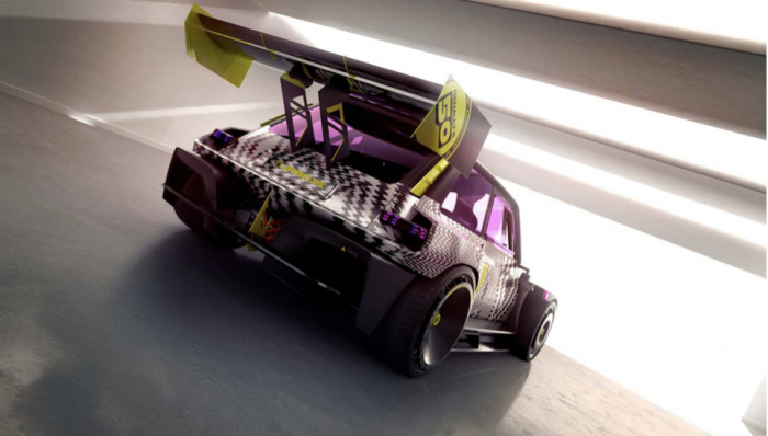 R5 Turbo 3E сразу привлекает внимание огромным задним антикрылом, которое видно издалека. Этот концепт, как и его предшественники Renault 5 Turbo и Turbo 2 с бензиновыми двигателями, имеет заднеприводную компоновку. Он оснащается двумя электромоторами (по одному на задние колеса) и литиево-ионным аккумулятором на 42 кВт/ч (он находится в центре под полом). Чтобы полностью зарядить аккумулятор, нужно 2 часа.