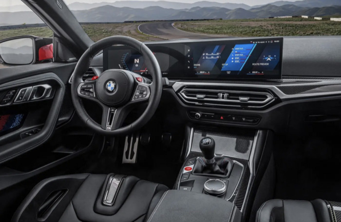 В салоне BMW M2 устанавливаются 12,3-дюймовая цифровая приборная панель, тачскрин на 14,9 дюйма и опциональный проекционный дисплей. Кроме того, автомобиль получил беспроводную зарядку и руль с подогревом.