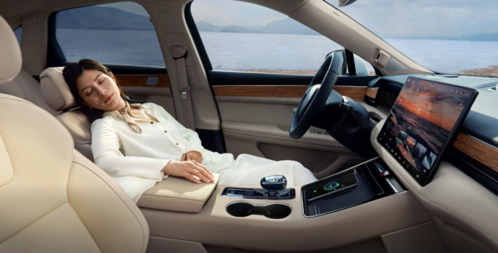 В задней части автомобиля расположены соединенные светодиодной полосой фонари, дополняющие заднюю светотехнику. Боковые дверные ручки утоплены в кузов и выдвигаются наружу только при активации. В комплектацию входят системы помощи во время второго уровня, радары миллиметрового диапазона, ультразвуковые радары и камеры для повышения безопасности.
