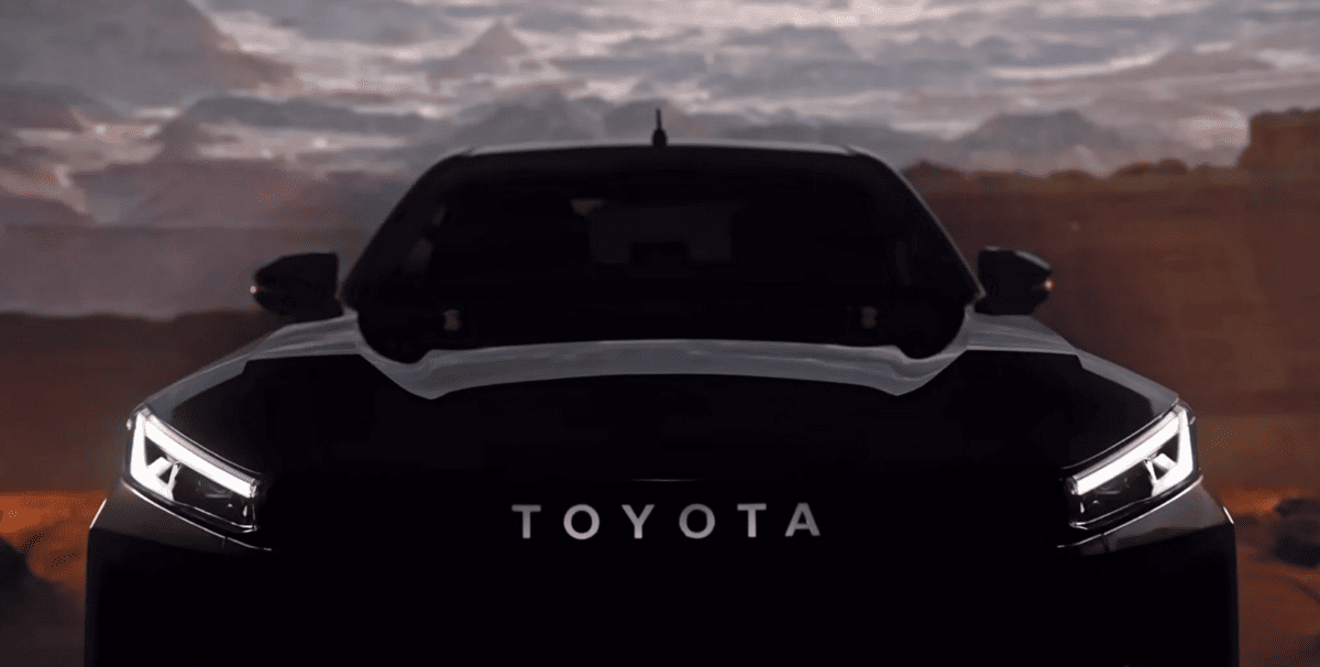 В коротком видео производитель показал переднюю часть пикапа. Теперь Hilux получил узкие светодиодные фары, мощную решетку с большими буквами TOYOTA и капот с глубокими выштамповками. Колесные арки стали более выразительными, а сзади появились угловатые фонари и небольшой спойлер на крышке багажника.