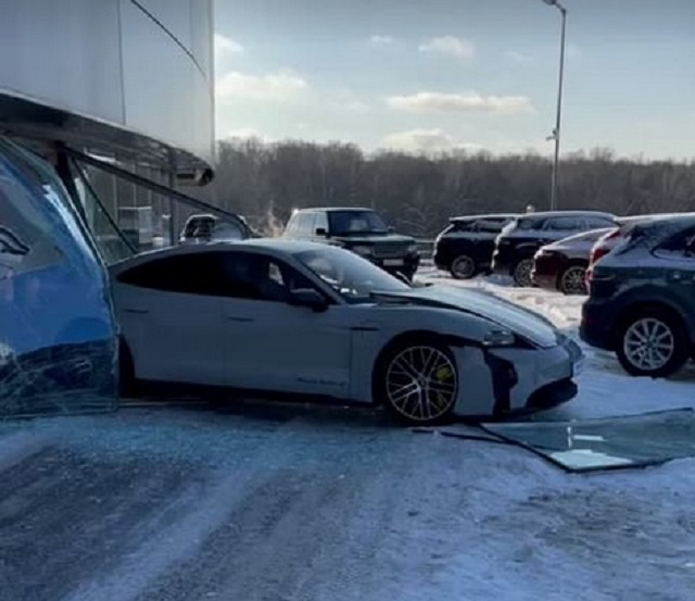 Новенький электромобиль Porsche разбили прямо в автосалоне