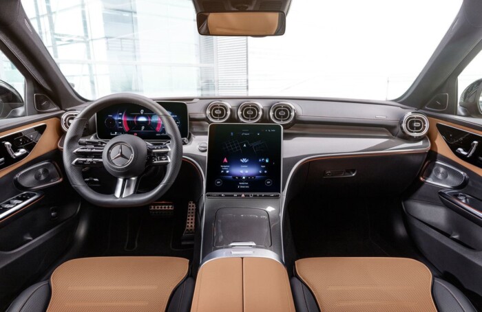 Однако больше всего сходств можно найти в салоне. C-Class повторил у S-Class мультимедиа MBUX c вертикальным 11,9-дюймовым экраном. Слева от нее расположился приборный щиток, оформленный в таком же стиле. Можно выбрать диагональ 10,25 дюймов или 12,3 дюйма.