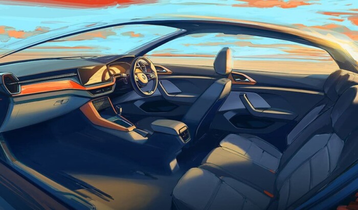 Интерьер Skoda Kushaq будет очень интересным, и уж точно не будет выглядеть дешево и сердито. Причем это действительно богатое оснащение: двухспицевое многофункциональное рулевое колесо, 10-дюймовый экран информационно-развлекательной системы, цифровая приборная панель, контрастные декоративные вставки и двухцветные сиденья.