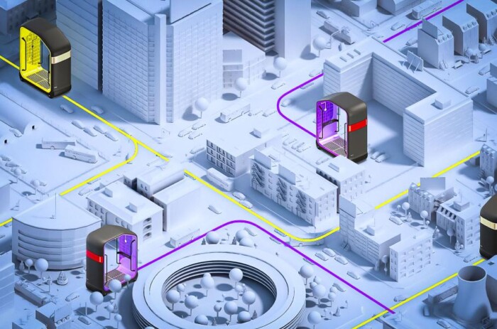 Капсулы будут различаться цветом подсветки. Такси – фиолетовые, общественный транспорт – желтый, корпоративные капсулы – синие.