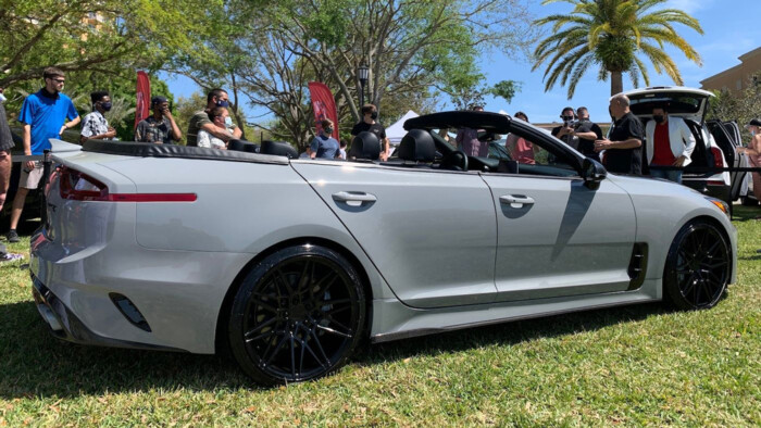 В Орландо (США) представили первый в мире кабриолет с мягкой крышей на базе Kia Stinger. Автомобиль разработало тюнинг-ателье Drop Top Customs по заказу одного из дилеров City Kia, сообщает «Твоя МАШИНА».