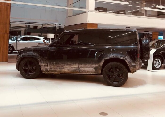 Поэтому на кузове можно заметить грязь и повреждения, да и пневма накрылась. Но автомобиль решили сохранить именно в таком виде – для истории. Машина выставлена как экспонат в харьковском автосалоне Land Rover.