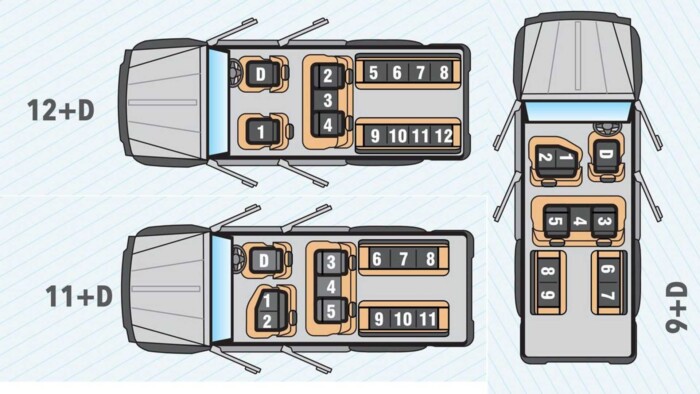 Салон выполнен в минималистичном стиле и отделан легко моющимися материалами. О комфорте не идет и речи – пассажирам предоставлены две расположенные друг напротив друга скамейки в багажном отсеке. Базовая модификация Force Trax Cruiser способна вместить 10 человек, что все равно является удивительным количеством.