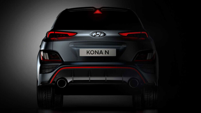 Дизайн Hyundai Kona N давно известен. Машина получит бамперы с красными вставками, новую радиаторную решётку, большие воздухозаборники и видоизмененную оптику спереди. Также авто оборудуют системой выхлопа с двумя патрубками, спойлером с третьим стоп-сигналом, диффузором и большими колёсными дисками.