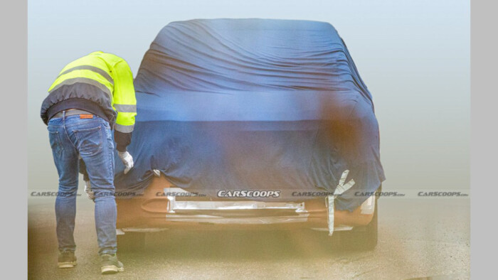 На фото запечатлен кроссовер, почти полностью закрытый чехлом. Но даже через него видно, что стилистика кузова заметно отличается от электрокаров Volkswagen. Так, корма более угловатая, а передняя часть выглядит агрессивней. Также у вседорожника нет традиционных «мускулистых» колесных арок.