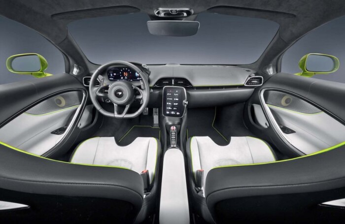 Салон сочетает в себе минималистичные черты и функциональную роскошь. Сиденье Clubsport обеспечивает комфорт в повседневной езде. Информационно-развлекательную систему и связь представляют два экрана, которые дают водителю доступ к Apple CarPlay, Android Auto, обновлений программного обеспечения Over-the-Air и последним телеметрическим данным McLaren Track.