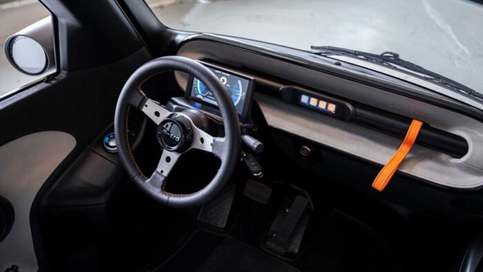 Как и BMW Isetta, двухместный Microlino имеет только одну дверь, которая расположена в передней части. Ручек нет: открывается дверь кнопкой. В салоне она находится возле лобового стекла.