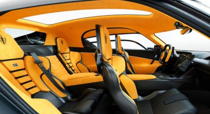Гиперкар вмещает четыре сидения, а двери открываются вверх. Благодаря поролону сидения принимают форму тела человека. Кроме того, два передних сиденья можно отрегулировать в четырех разных направлениях. Также стоит отметить подстаканники с функциями нагрева и охлаждения, мультимедийные дисплеи, беспроводное зарядное устройство для мобильных устройств и даже лампы для чтения.