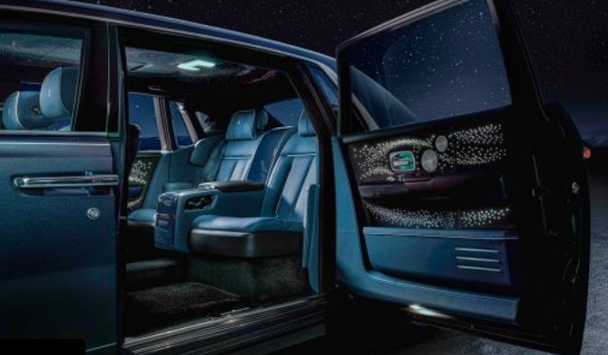 Седан внутри напоминает космическое пространство, а пассажирам предоставлены подушки и электрические подножки. Также в комплекте идут две бутылки шампанского и набор хрустальных бокалов. Кроме того, сидения сделаны вручную, а отделаны овечьей шерстью и деревом.