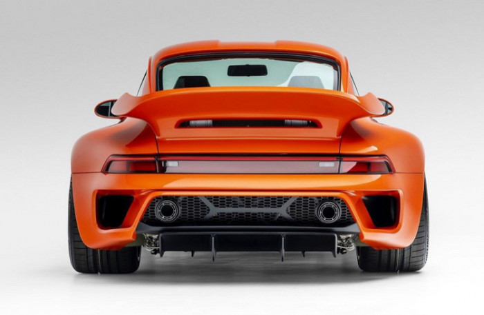 Двойная крыша – это еще один штрих автоспорта, но самый яркий вид – это, безусловно, задняя часть. Основной особенностью является массивное заднее крыло в форме китового хвоста с функциональными вентиляционными отверстиями, но также новый задний бампер с огромными отверстиями, большой диффузор и высоко расположенные двойные выхлопные трубы, напечатанные с помощью 3D-печати из инконеля или напоминающего титана Carrera. Конечно, Gunther Werks добавил сделанные по заказу светодиодные задние фонари, которые также используются в их моделях 993 Speedster и Coupe.
