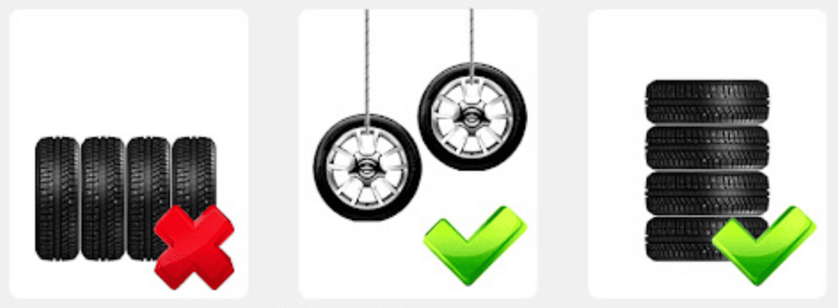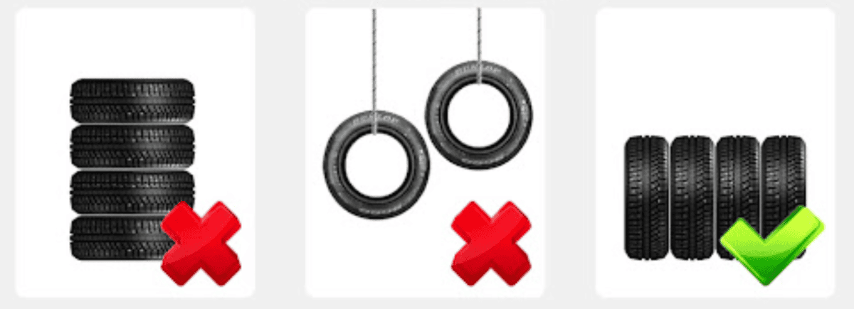 2. Хранить шины нужно правильно: вертикально или в подвешенном виде
