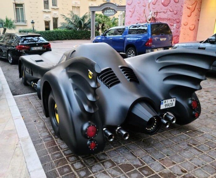 Этот Бэтмобиль был построен из «останков» одного из нескольких авто, сделанных для съемок фильма про киногероя. Он был создан в Киеве, а в конце прошлого года он переехал в Монако, так как машина была куплена сыном президента Египта.