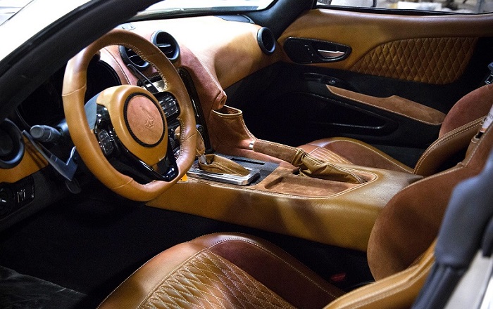 Незважаючи на те, що це спортивний болід-суперкар, його інтер’єр настільки ж розкішний, як і все інше. Оточення циферблатів виготовлено з цільних шматків алюмінію і шкіри, а вуглецеве волокно прикрашає практично все, що не є металом екстра-класу.