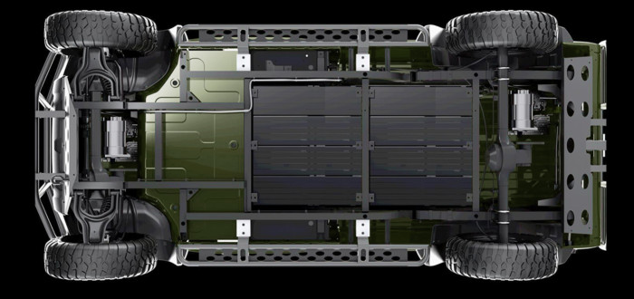 Новое авто будет электрическим, с задним приводом. Будет установлен электродвигатель, питающий батареи, которые будут находиться под полом (см. схему)