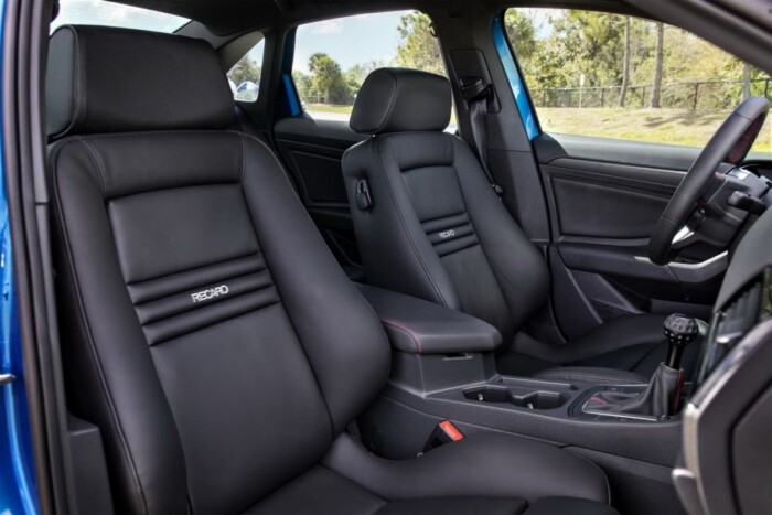 В салоне установлены новые кожаные сидения Recaro Ergomed ES и рычаг переключения передач Black Forest Industries с интересным наконечником в форме мяча для гольфа.