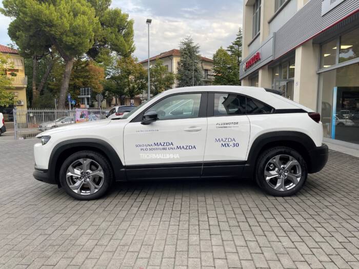 Внешне электрокар очень похож на модель СХ-30 и это неудивительно, ведь он построен не на полноценной электромобильной платформе, а на адаптированной «тележке» моделей Mazda 3 и CX-30.