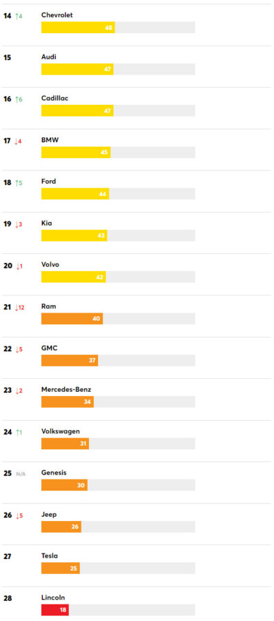 Експерти відзначили, що найкраще себе показали азіатські моделі – їхній результат склав 62 бали. А ось автомобілі європейського та американського виробництва отримали лише 44 та 42 бали. Якщо розглядати сегменти, то найбільше балів набрали седани універсали, купе та кабріолети – по 57 балів. Позашляховики та кросовери отримали по 50 балів, а пікапи та мінівени – по 43.
