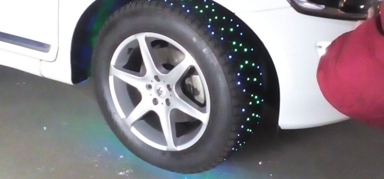 У Фінляндії на випробувальному полігоні Nokian журналісти помітили автомобіль Volvo на “модних” шинах. Незвичайні шини з вбудованими світлодіодами, за словами розробників, орієнтовані на любителів гламурного життя.