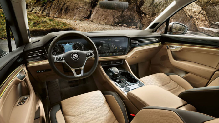Надпотужний Touareg отримав два варіанти дизайну. Перший називається Elegance, і в ньому переважають «холодні, металеві» відтінки. Другий – Atmosphere – вирізняється «теплотою», де переважають дерево і натуральні тони.