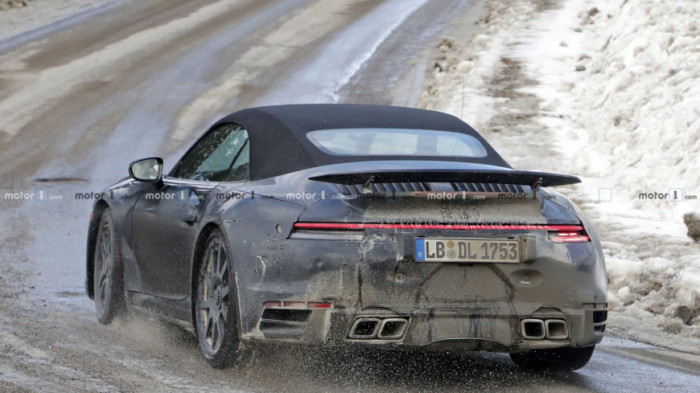 В Інтернеті з’явилися знімки нового Porsche 911 Turbo Cabrio. Німецька новинка буде представлена в наступному році. Поки що помічений прототип Porsche 911 Turbo у версії кабріолет.