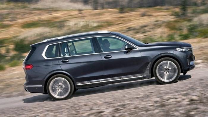 Повнорозмірний BMW X7 отримав 21- і 22-дюймові колісні диски, світлодіодну оптику і значних розмірів повітрозабірники, що роблять і без того великий позашляховик візуально ширшим.