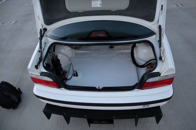 Випущений в далекому 1996 році BMW M3 перетворили на безкомпромісний спорткар для трек-днів. Під капотом білого купе розмістили 515-сильний V8 від GM, допрацьований тюнерами з Texas Speed. Потужність передається на задні колеса через шестиступінчасту механіку Tremec TR6060.
