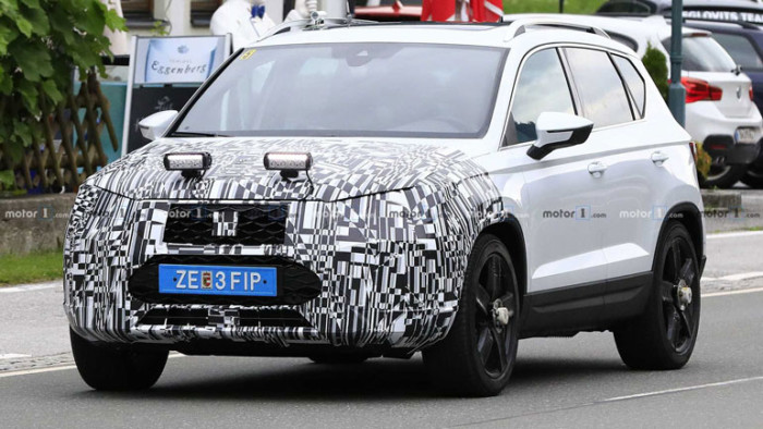 Як бачимо, автовиробник вивів на випробування два різних прототипи. Перший, схоже, ідентичний Ateca, яка продається сьогодні – навіть передній бампер не змінився, а друга модель трохи цікавіша: передня частина концепта, включаючи фари, замасковані щільним шаром камуфляжу.