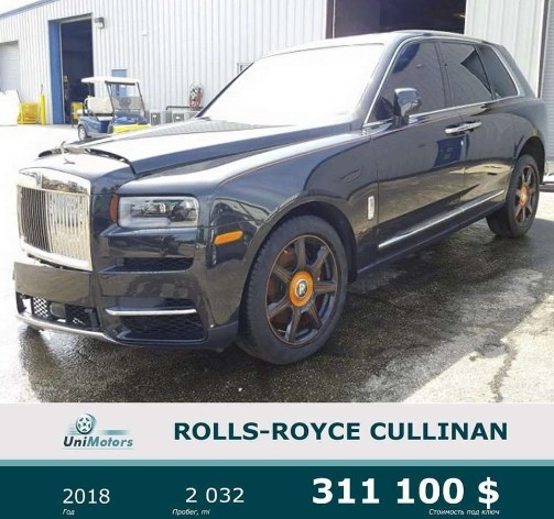 Пошкоджений Rolls-Royce Cullinan, який страхова компанія в США, зрозуміло, списала і відправила на смітник-аукціон, пропонують купити українцям.
