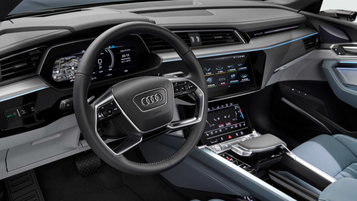 Покупці, що бажають заощадити, можуть вибрати e-tron Sportback 50, в якому використовується батарея меншою потужністю (71 кВт · год) і менш потужні електродвигуни (308 к.с.).
