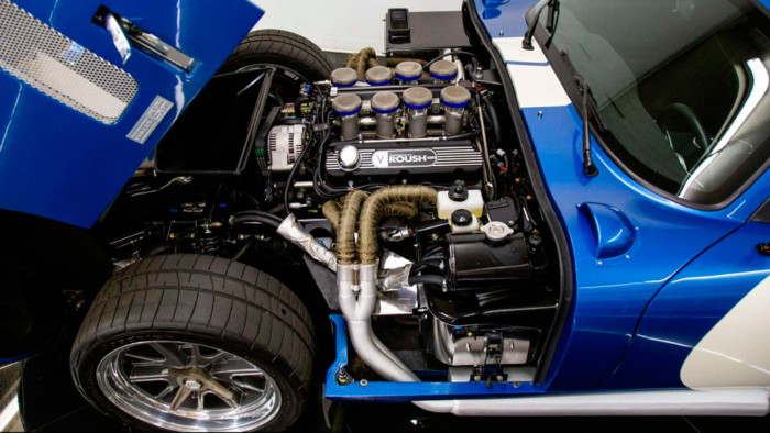 Під капотом моделі встановлено двигун Roush 427cui V8 з 8-ступінчастою системою впорскування палива Borla. Віддача силової установки становить 562 к.с. і 535 Нм крутного моменту. В якості трансмісії використовується 6-ступінчаста МКПП Tremec T56 з гідравлічною гоночної муфтою. Також тут встановлена вихлопна система з керамічним покриттям, яка підкреслює чудовий звук потужного V8. Крім того, в машині є електросклопідйомники, поліпшена рульова система і вентильовані дискові гальма Shelby Racing / Wilwood.