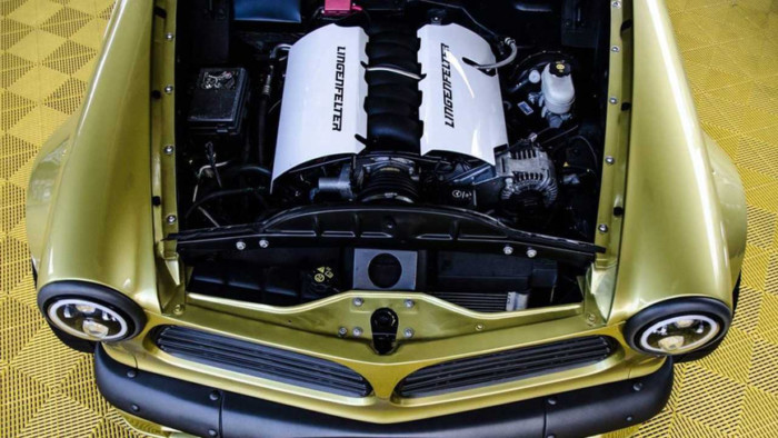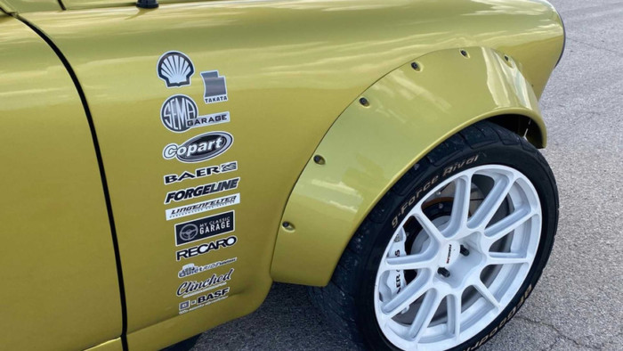 Класичний автомобіль 1963 року отримав серйозні зміни, що включають наявність розширювачів колісних арок з зовнішнім кріпленням і надрукований на 3D-принтері задній спойлер. Купе пофарбоване порошковою фарбою BASF B67 Austin Yellow жовтого кольору і «взуте» в шини Forgeline GTD-5.