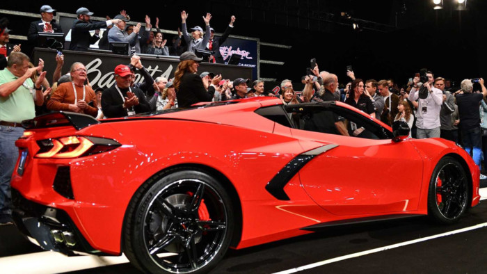 Перший серійний Chevrolet Corvette нового восьмого покоління пішов «з молотка» на аукціоні Barret-Jackson за рекордні 3 млн доларів. Спорткар виявився дорожчим, ніж Bugatti Chiron, вартість якого стартує від 2 млн 660 тис. доларів.