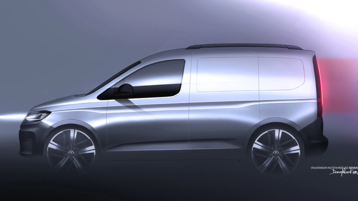 Як зазначили в Volkswagen, новий Caddy буде «абсолютно несхожим» на попередників. Судячи з опублікованих зображень, відмітними рисами автомобіля стануть нижня решітка радіатора з візерунком у вигляді сот і горизонтальні світлодіодні денні ходові вогні, які візуально об’єднані за допомогою декоративної лінії.