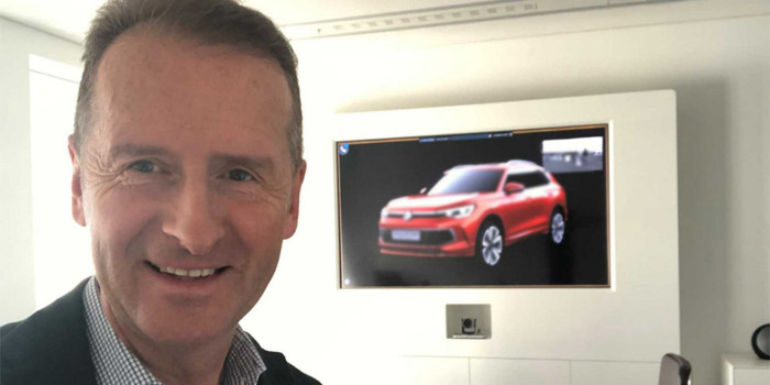 Глава Volkswagen Герберт Дісс в соціальній мережі Linkedin розповів про те, як компанія адаптується до роботи у віддаленому режимі через пандемію коронавірусу. Крім цього топ-менеджер опублікував свою фотографію, де на задньому плані можна побачити відеоекран із зображенням нового кросовера.