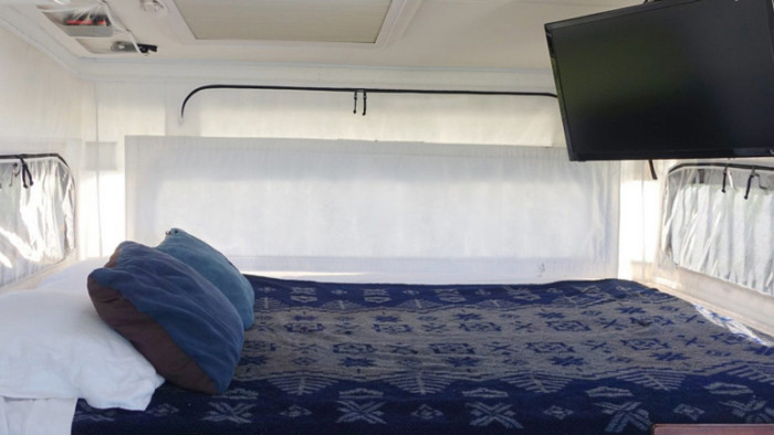 Як варіант, він може бути оснащений мікрохвильовою піччю і допоміжним генератором. Ліжко має «королівський» розмір з матрацом з піни та ефектом пам’яті.